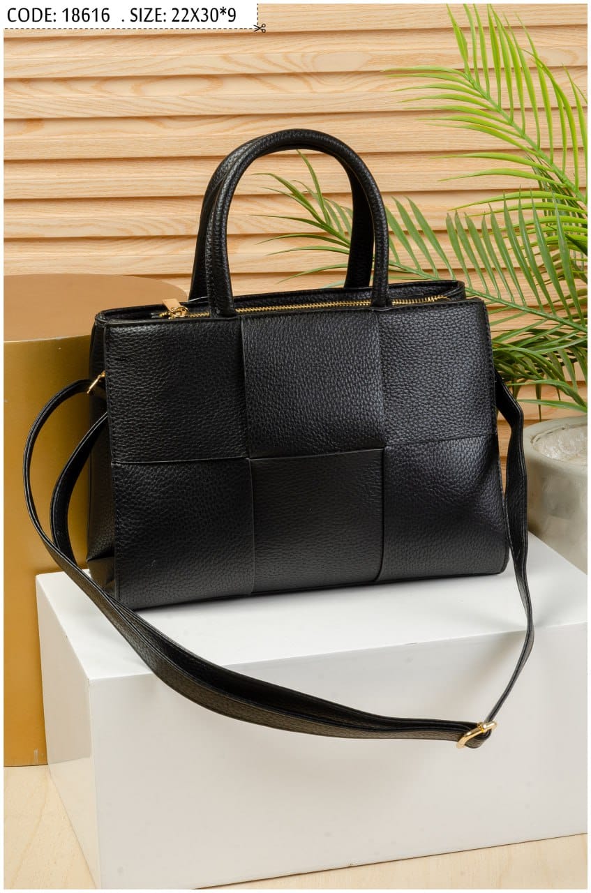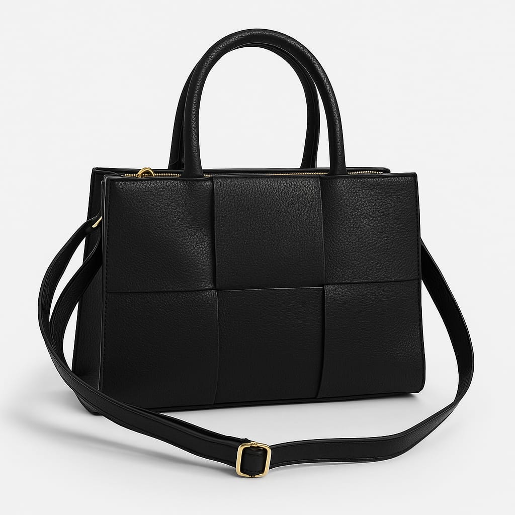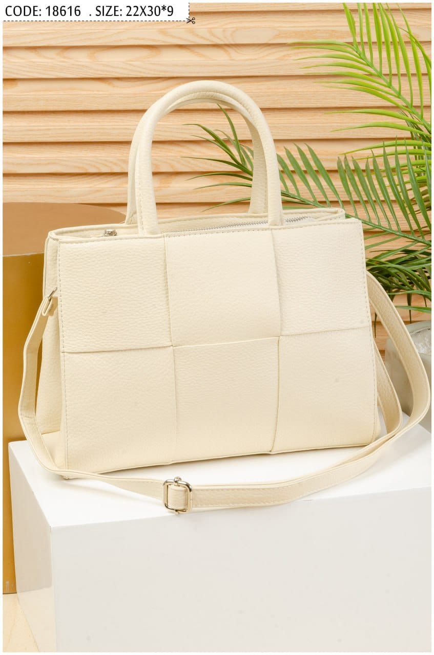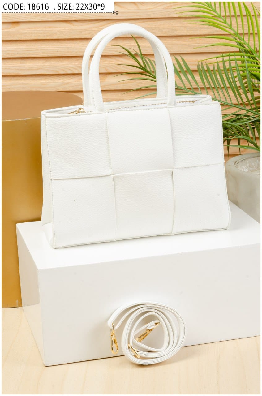 A stylish and modern handbag featuring a woven square pattern design, adding a unique and elegant touch. Crafted from high-quality faux leather with a soft yet durable texture, making it perfect for daily use.