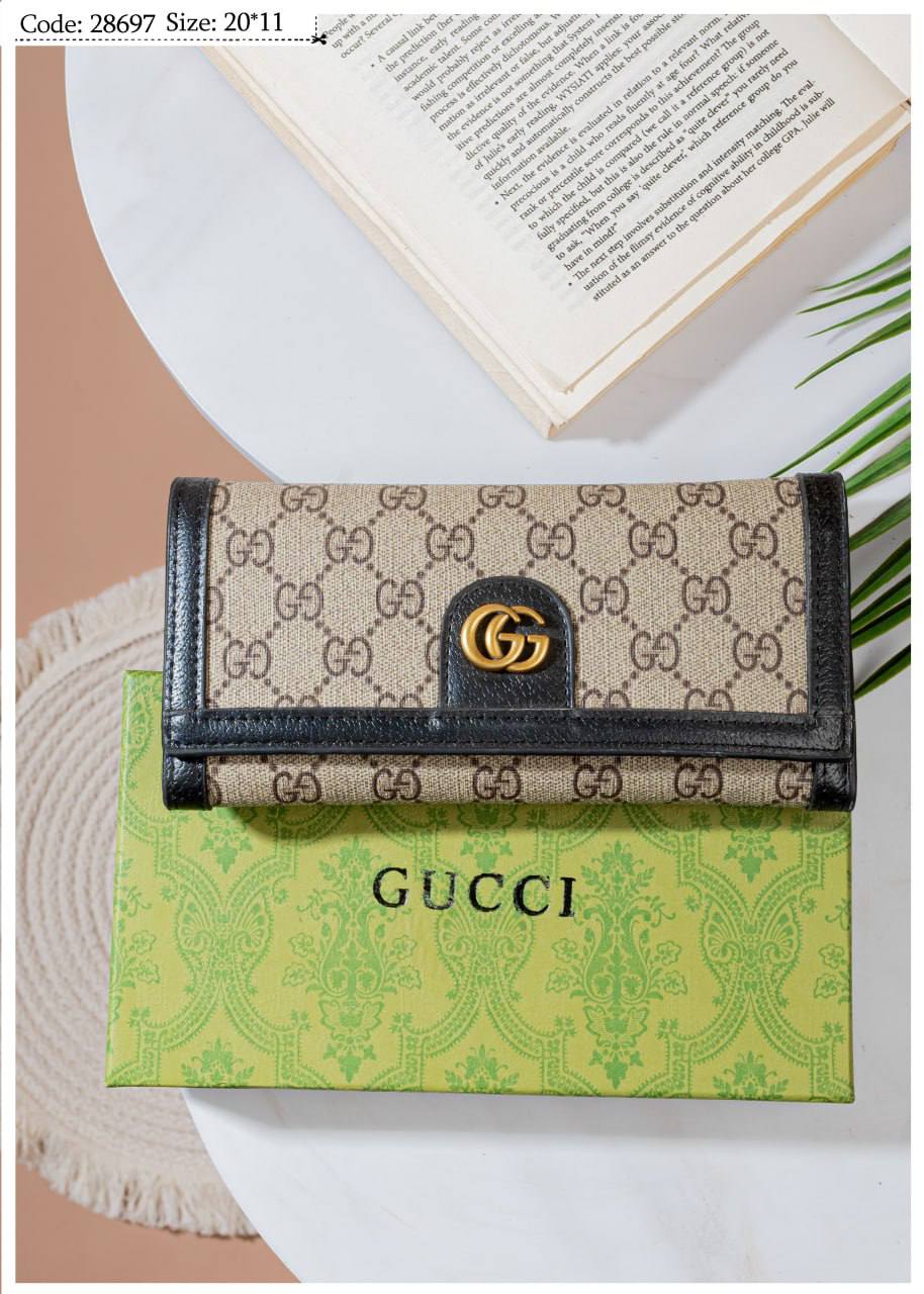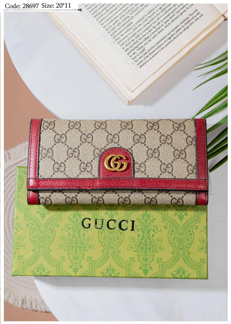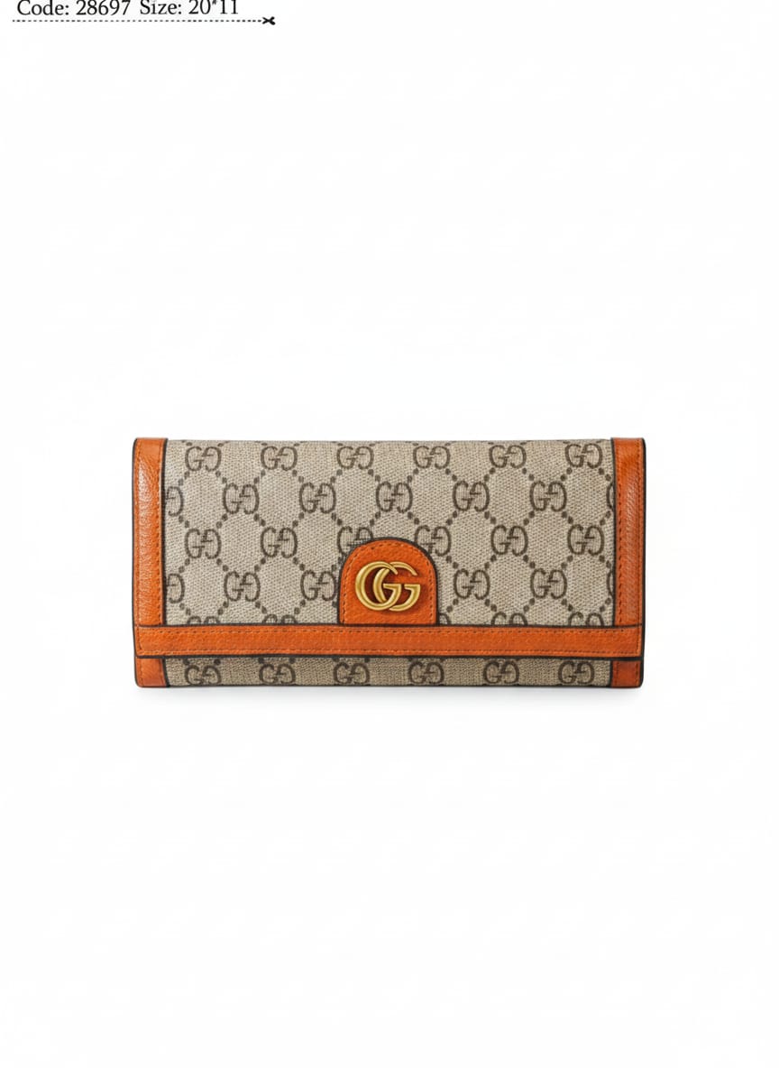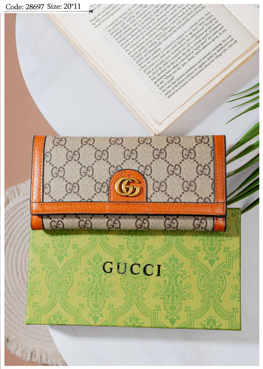 The wallet features the iconic GG monogram canvas, paired with premium leather trimming in multiple elegant color options (Brown – Orange – Red – Black). The front is embellished with the classic gold-tone GG logo, adding a luxurious touch that instantly enhances your look.