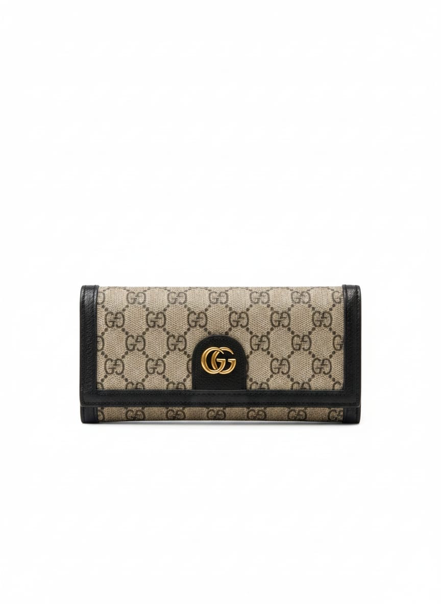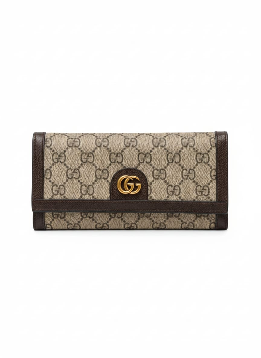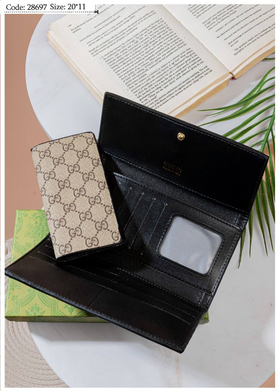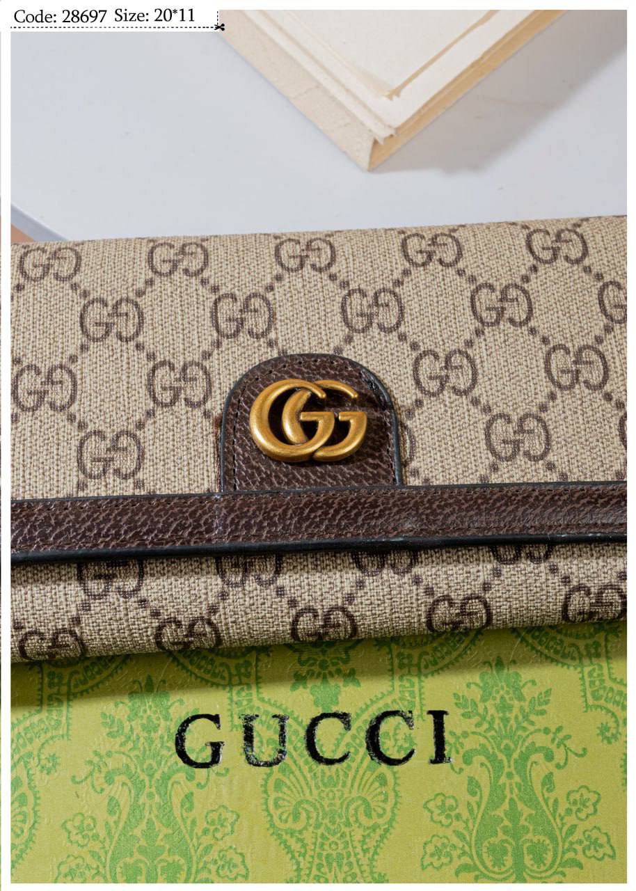 The wallet features the iconic GG monogram canvas, paired with premium leather trimming in multiple elegant color options (Brown – Orange – Red – Black). The front is embellished with the classic gold-tone GG logo, adding a luxurious touch that instantly enhances your look.