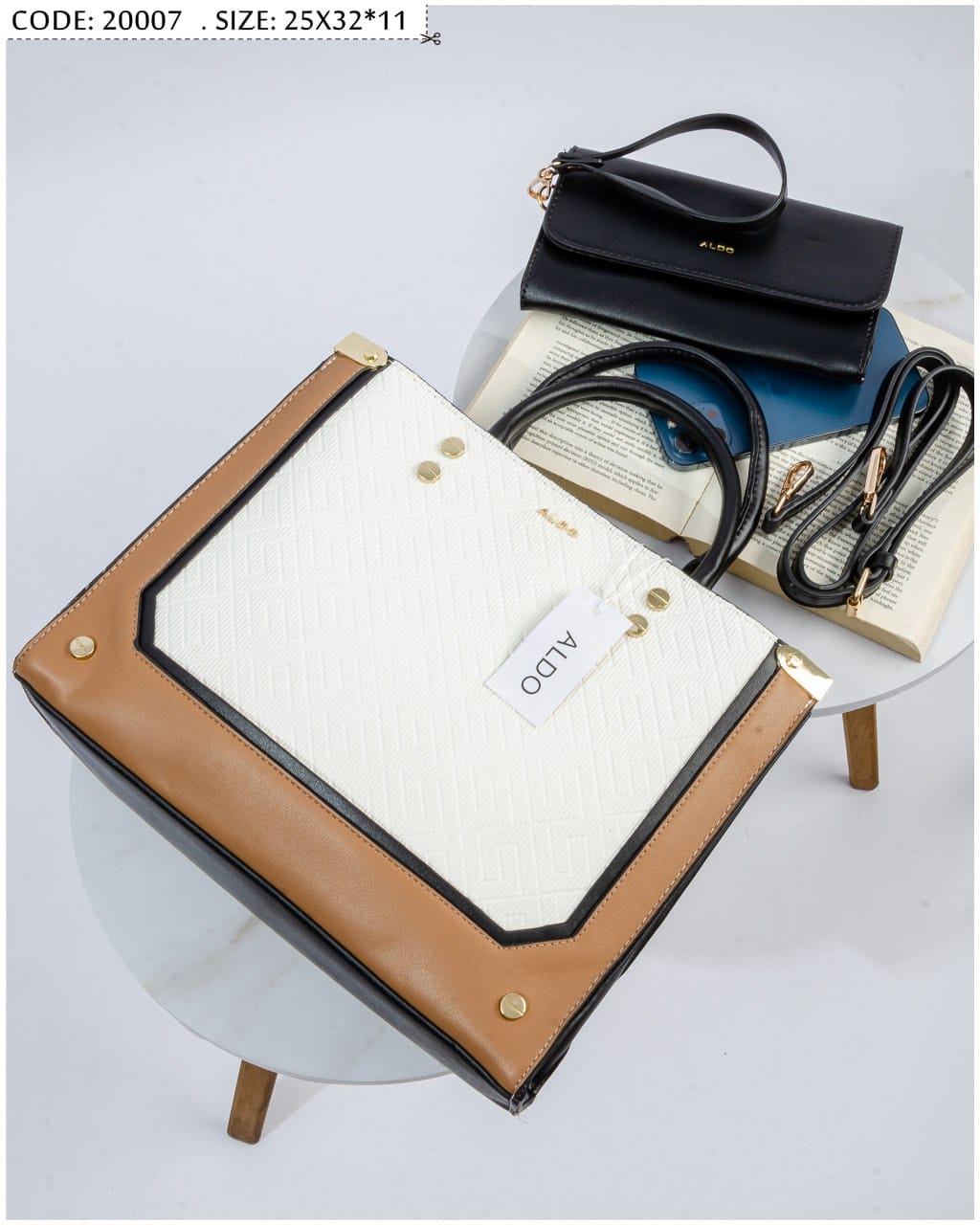 ALDOاكتشفي أناقة لا تُضاهى مع حقيبة العملية والفاخرة. تصميم يجمع بين البساطة الكلاسيكية والتفاصيل العصرية ليمنحك مظهرًا أنيقًا يناسب جميع إطلالاتك.