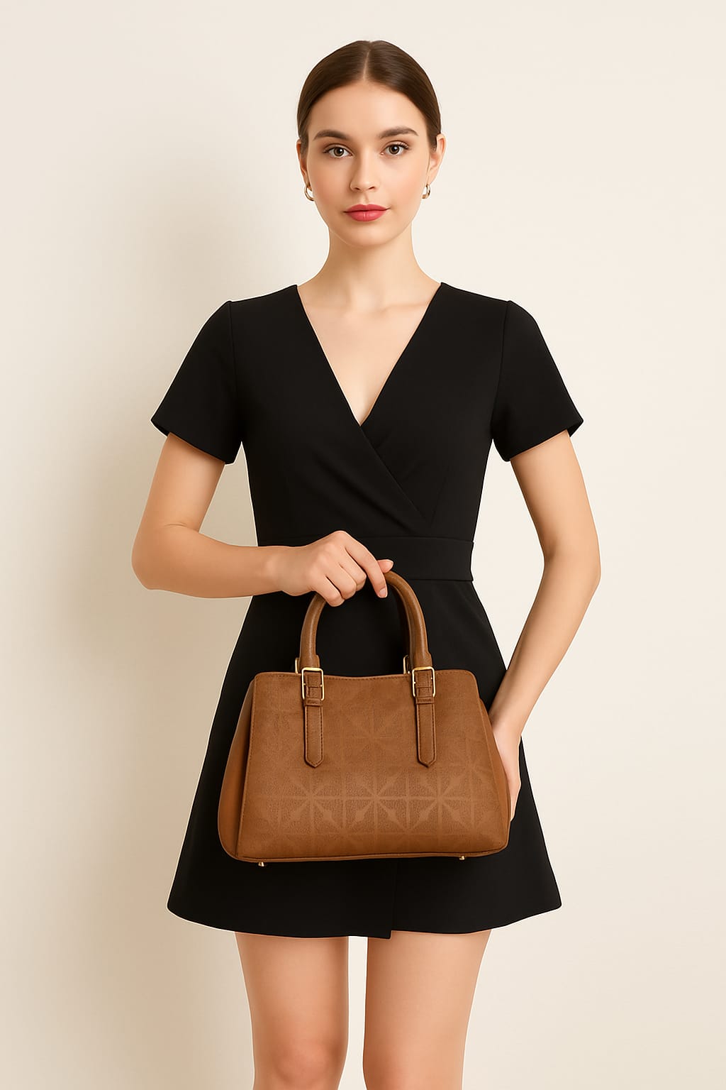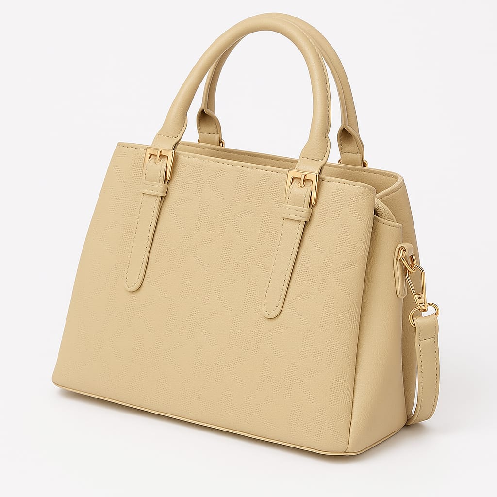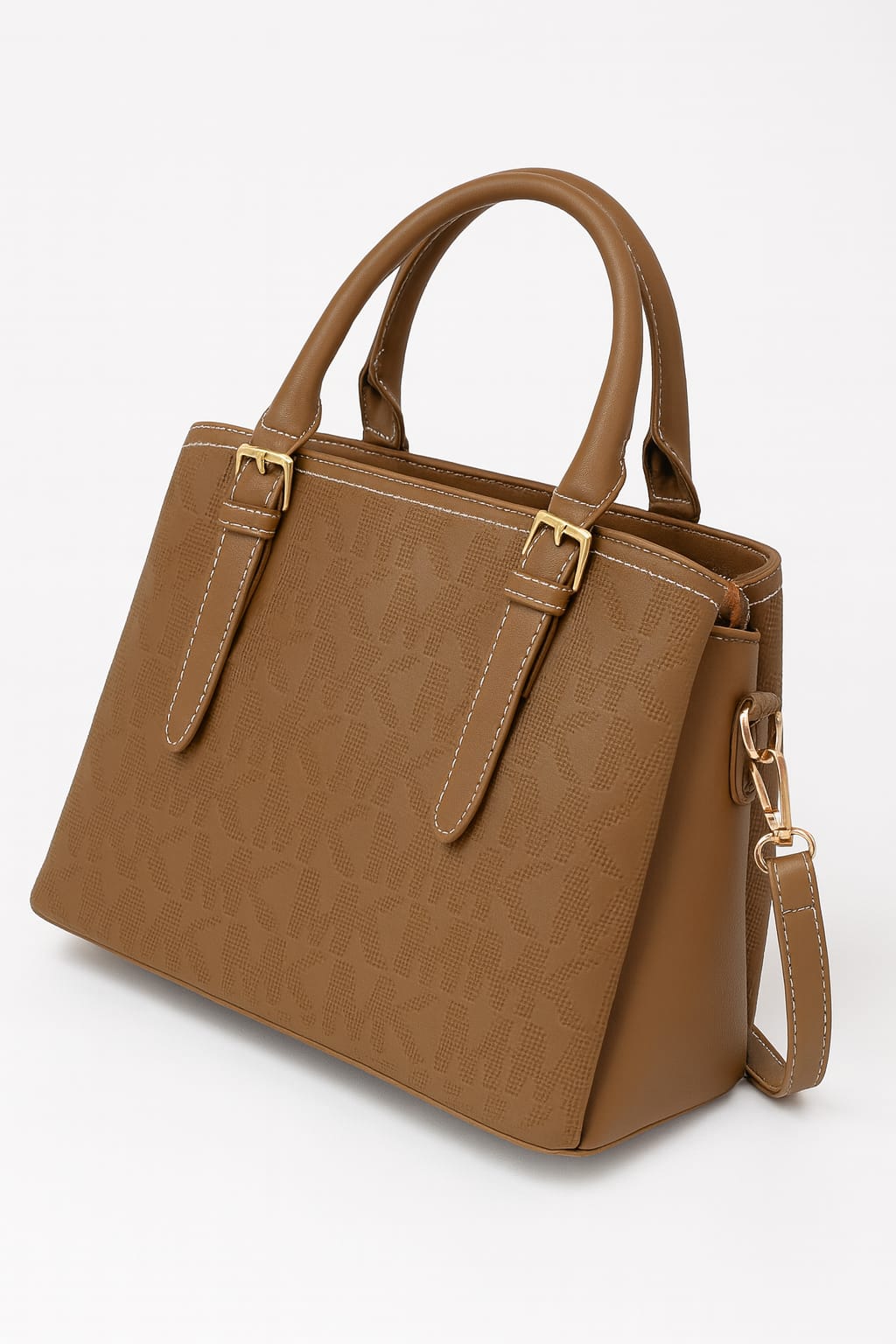 مصنوعة من خامة جلد صناعي عالي الجودة بنقشة بارزة على شكل حروف مميزة، تعطي الشنطة لمسة فاخرة تشبه الماركات العالمية.