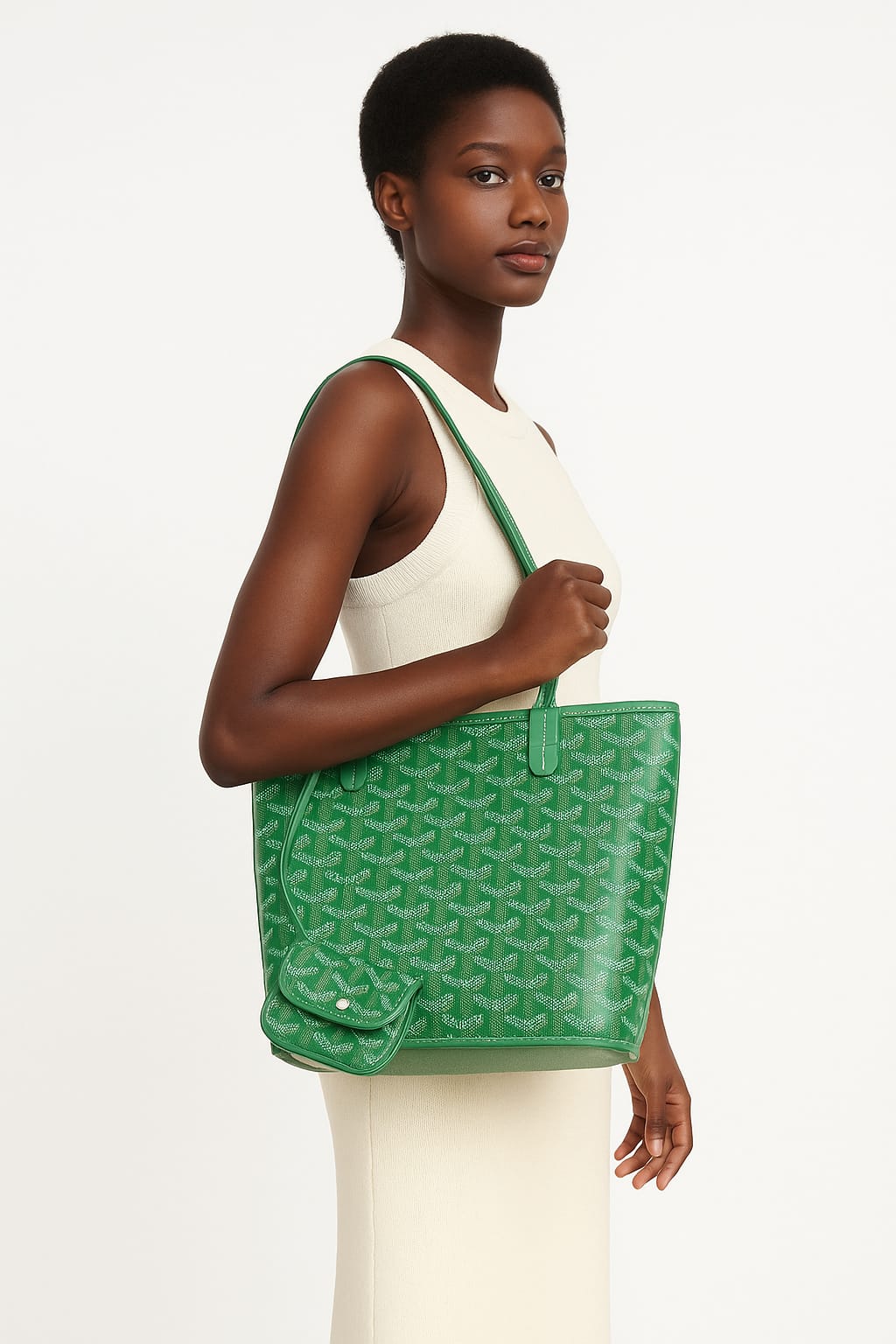 Made with Goyard’s iconic monogram canvas and genuine leather trims, this bag combines timeless elegance with durability for everyday sophistication.