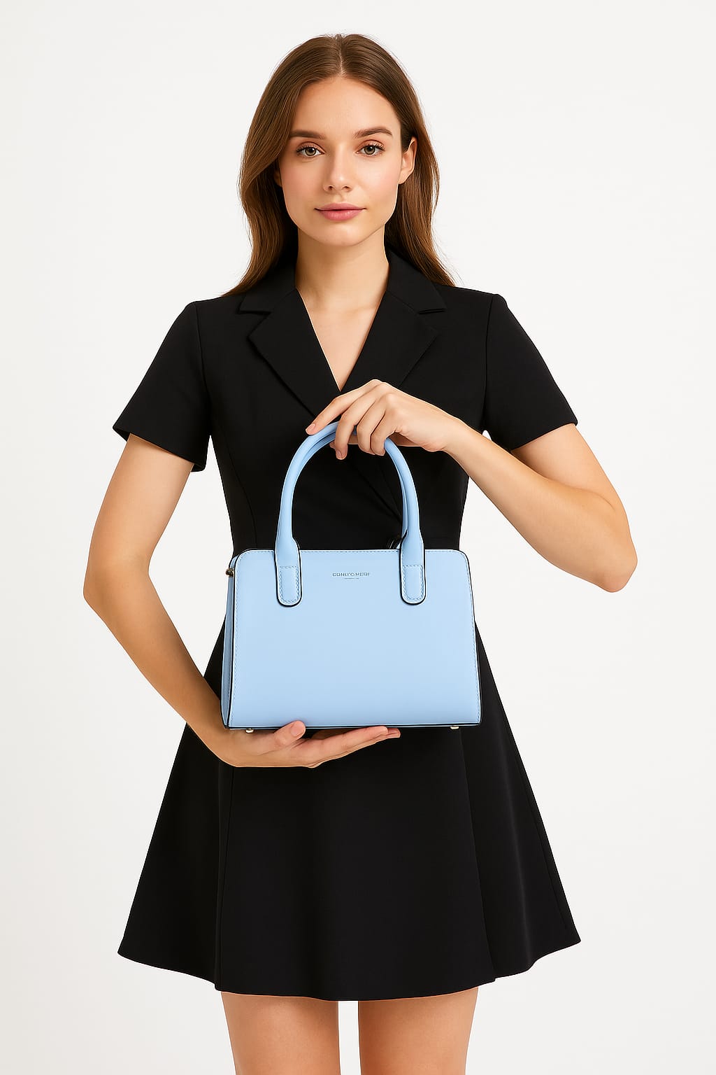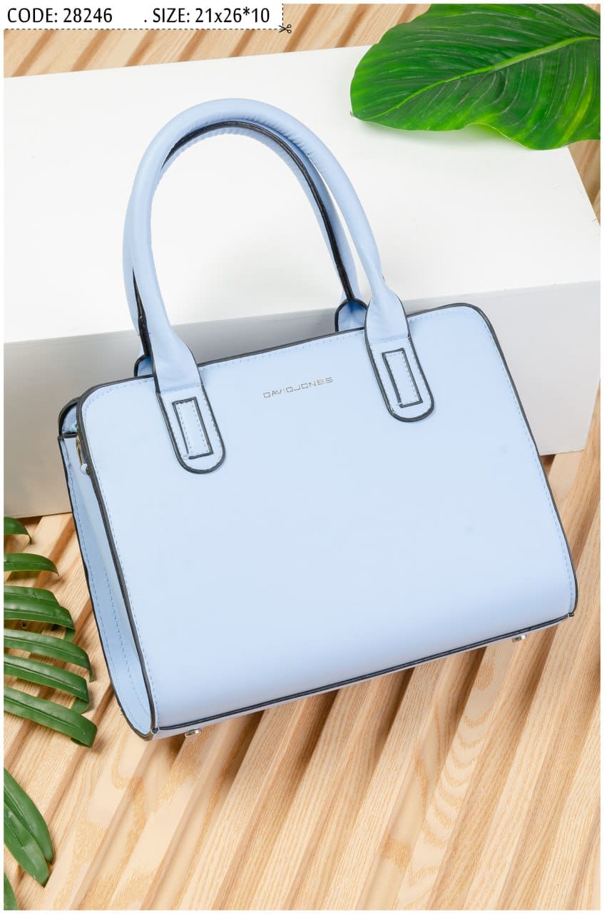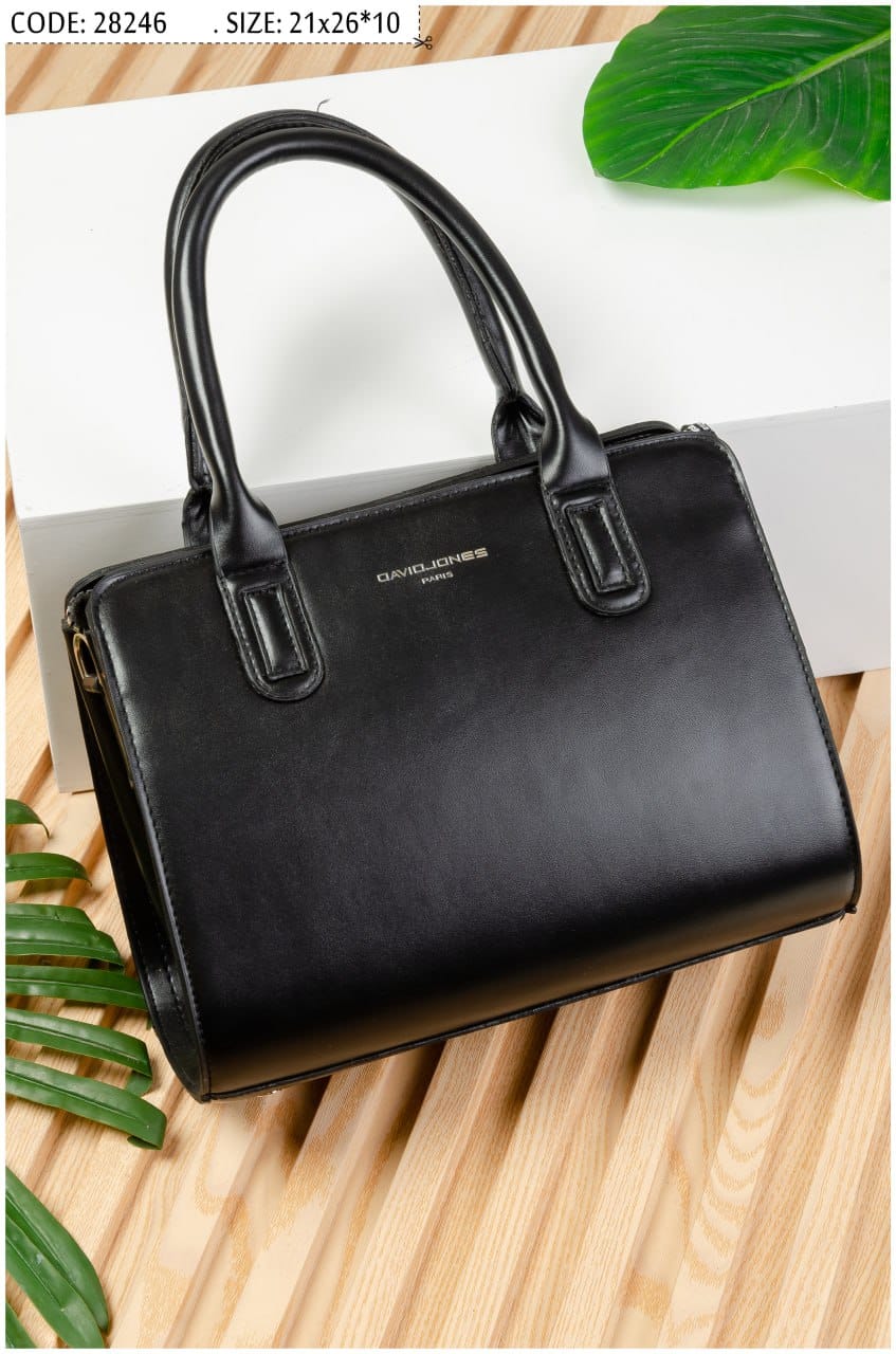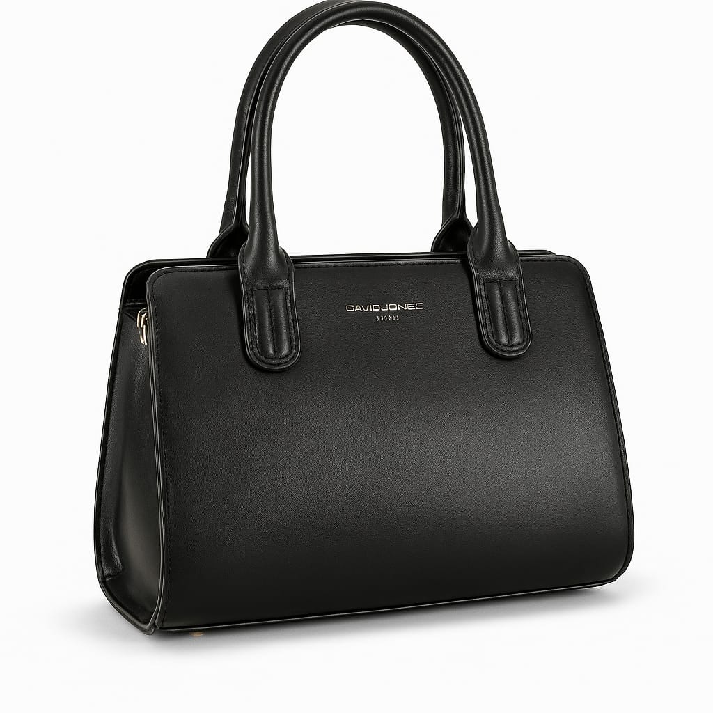 Classic and elegant handbag from David Jones, crafted from high-quality smooth faux leather. Designed with sturdy double top handles for easy carrying, and a practical medium size (21×26×10 cm) that makes it perfect for everyday use or work occasions.
