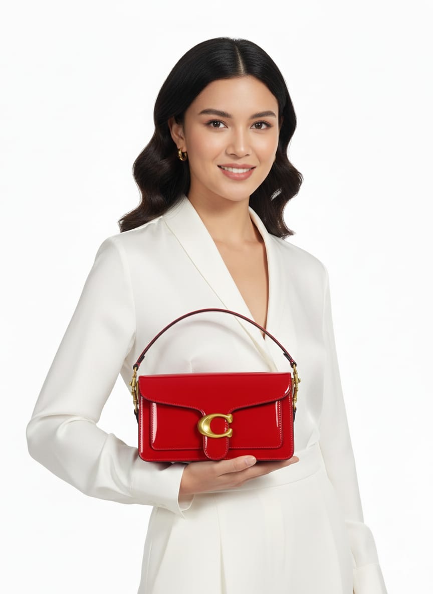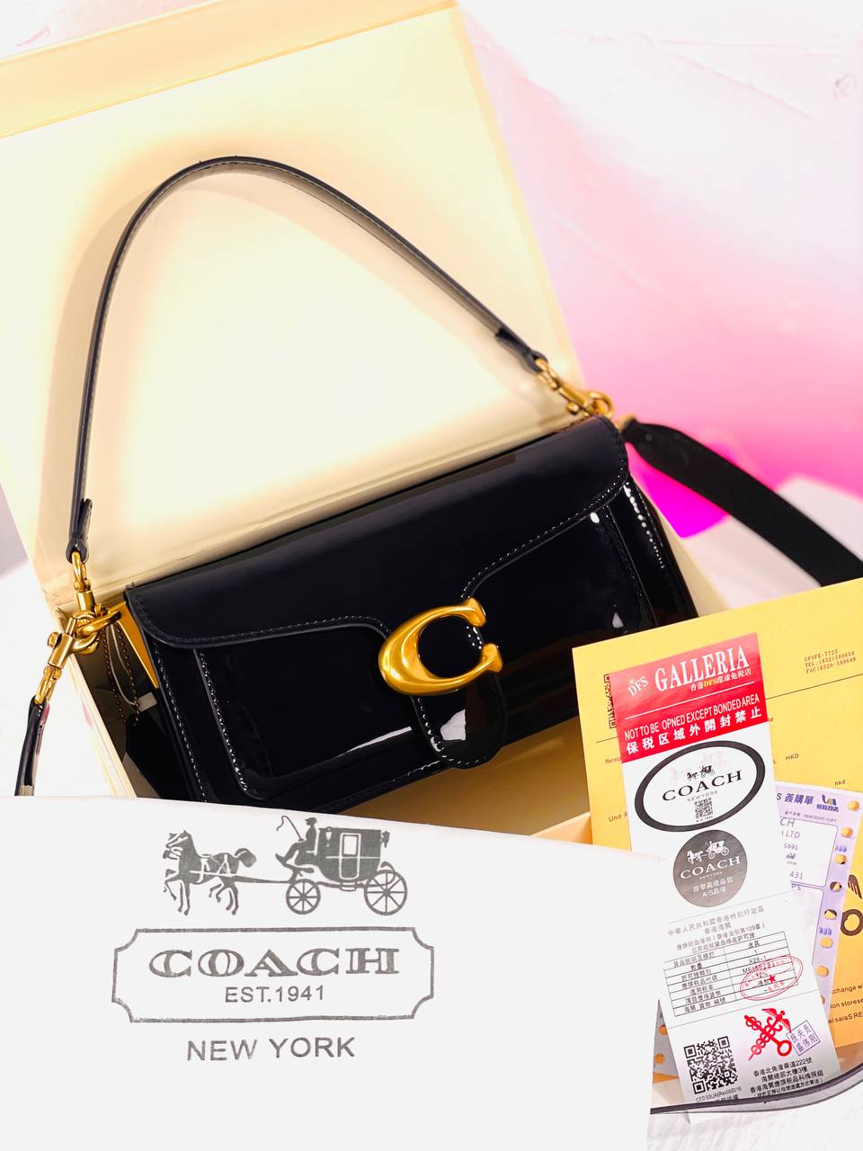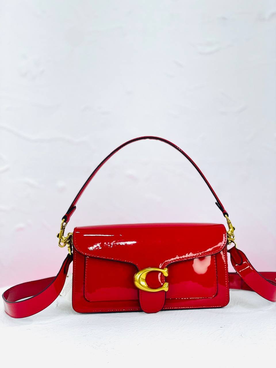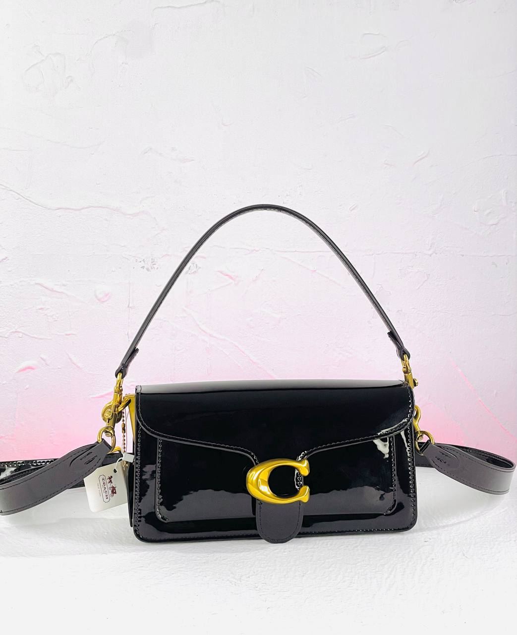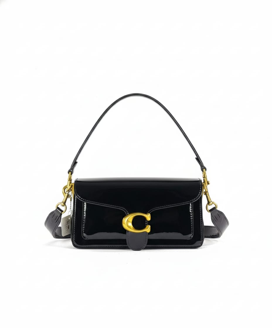 Elevate your look with this elegant Coach bag featuring a glossy patent leather finish and the iconic gold “C” buckle that instantly adds a luxe touch. Designed to be both stylish and practical, it works perfectly for day-to-night wear. Carry it by the top handle or switch to the adjustable long strap for a comfortable shoulder or crossbody style.