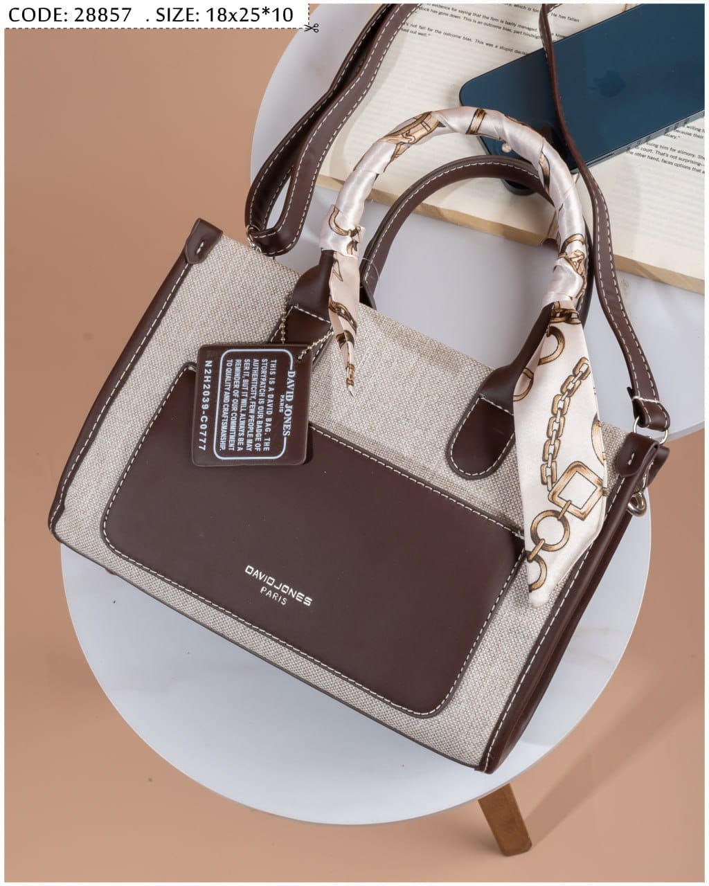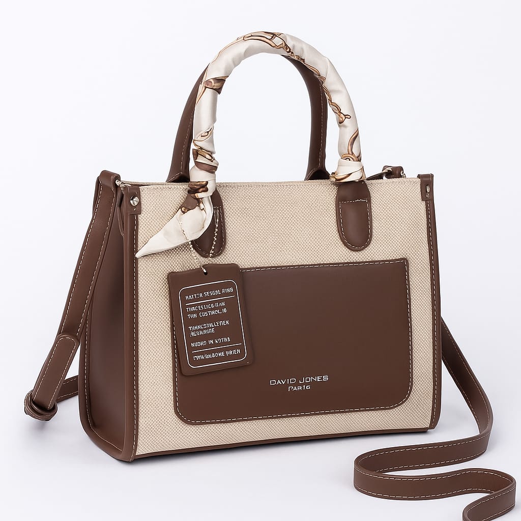 The David Jones Paris handbag is a modern and chic design that combines premium leather with durable canvas, making it the perfect choice for stylish women who value elegance and practicality.