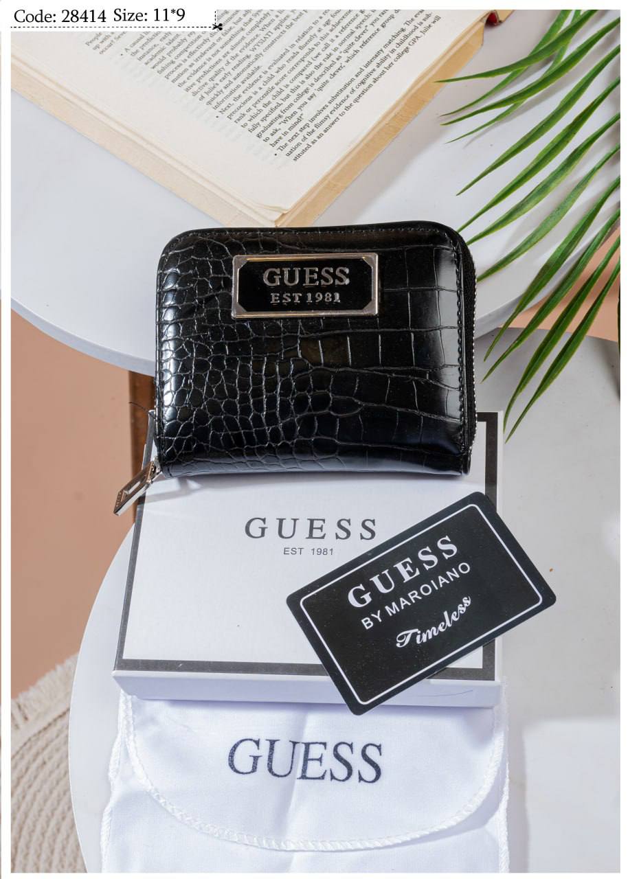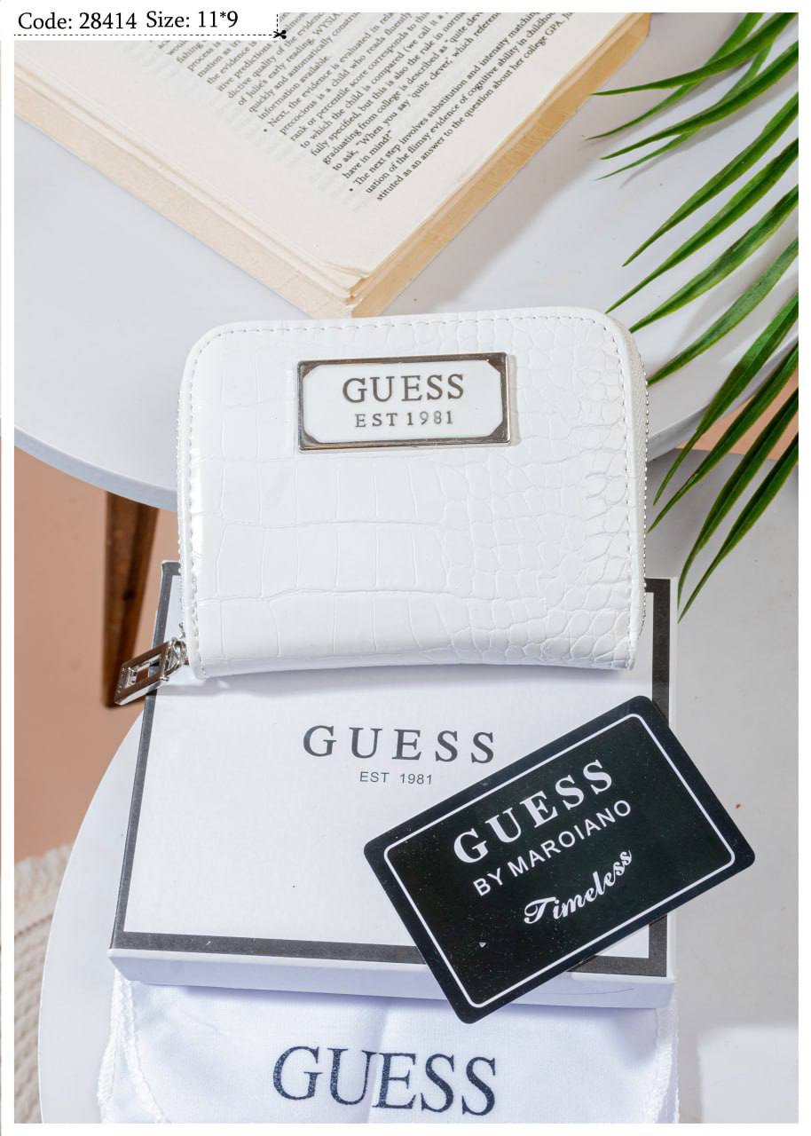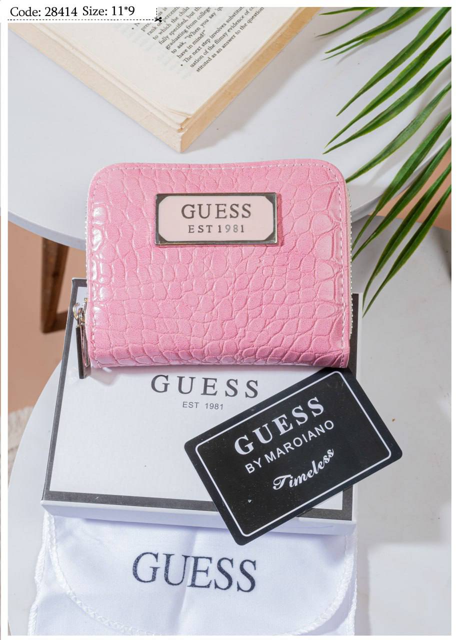 This imported Guess wallet features a luxurious textured leather design that adds a sophisticated and stylish touch to any look. The front metal logo plaque highlights the brand’s classic identity and enhances the wallet’s elegant appearance. Available in several chic colors such as pink, black, and white, this model suits a wide range of preferences and outfits.