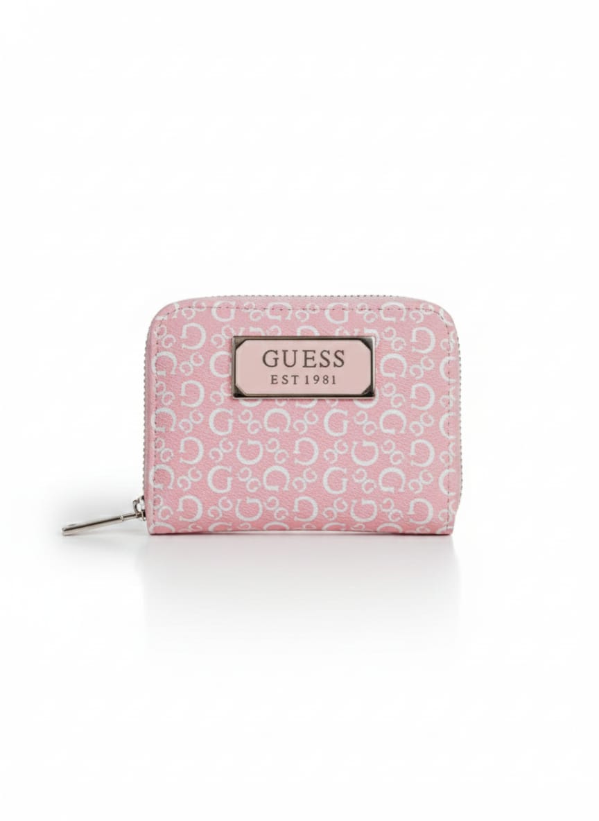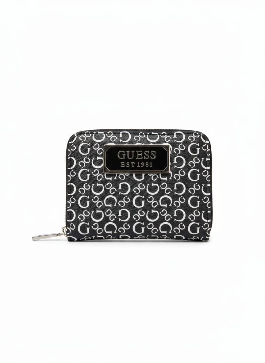 This imported Guess wallet combines elegance and practicality in a beautifully crafted design. The repeating monogram pattern enhances its sophisticated look, while the front metal plaque adds a luxurious touch that highlights the brand’s classic identity.