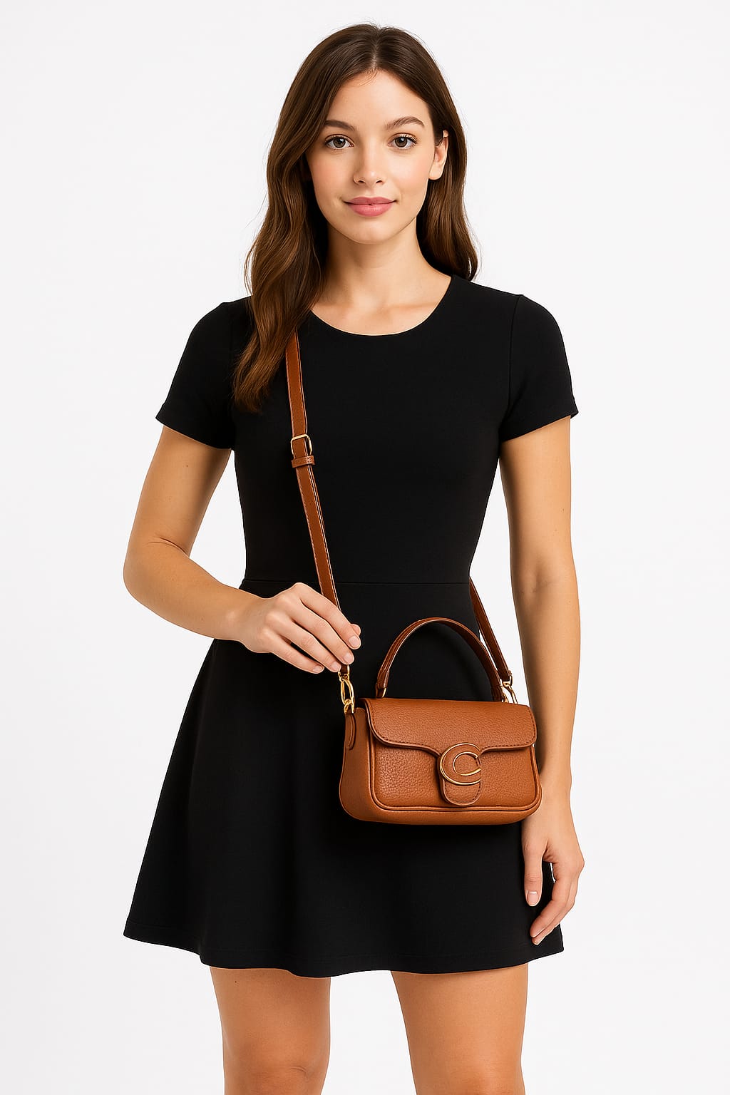Imported mini handbag in elegant brown leather look, perfect for daily casual outings.