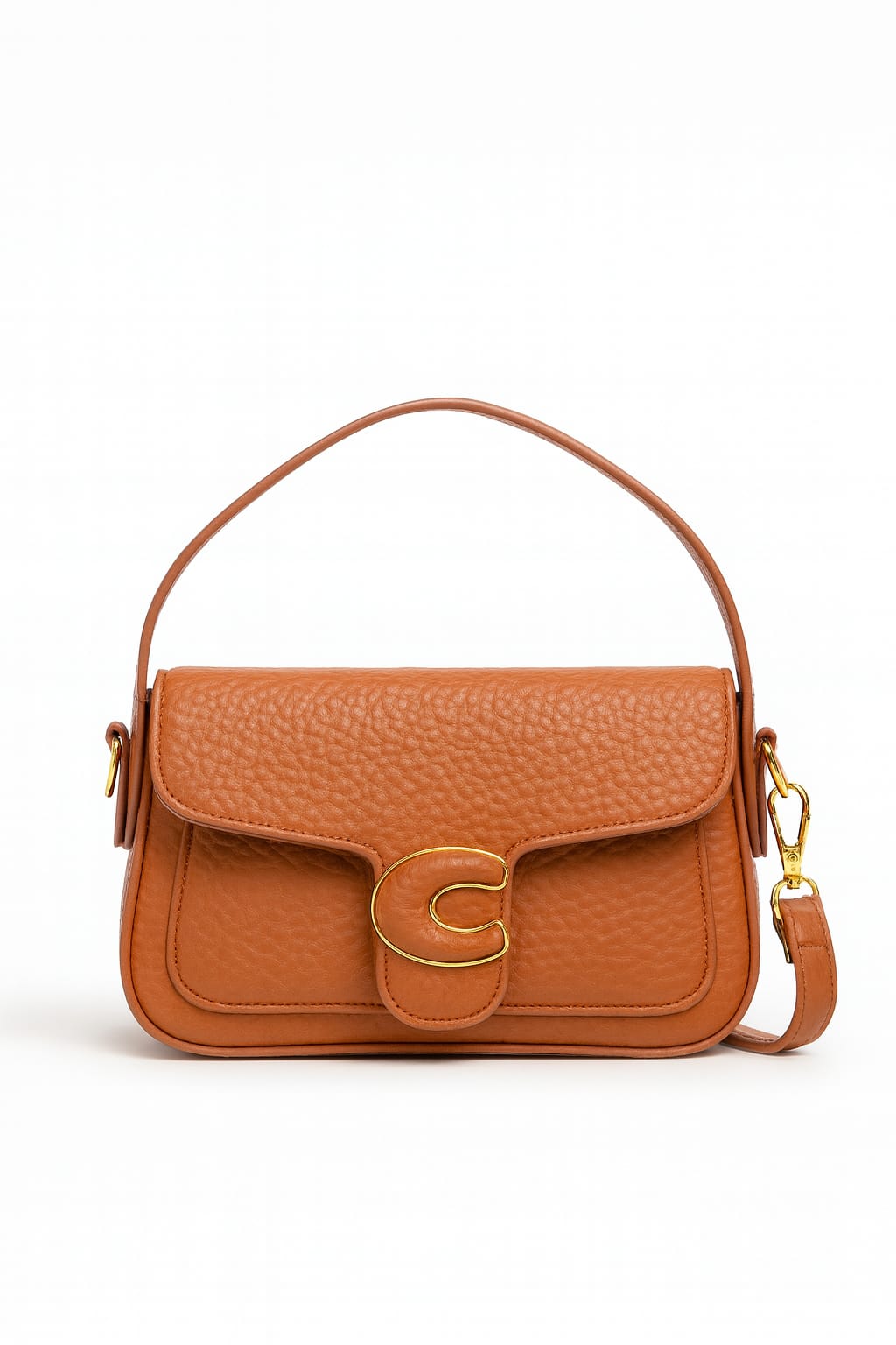 شنطة صغيرة مستوردة بتصميم جلد طبيعي بدرجة بني أنيق، مثالية للطلعات اليومية.
