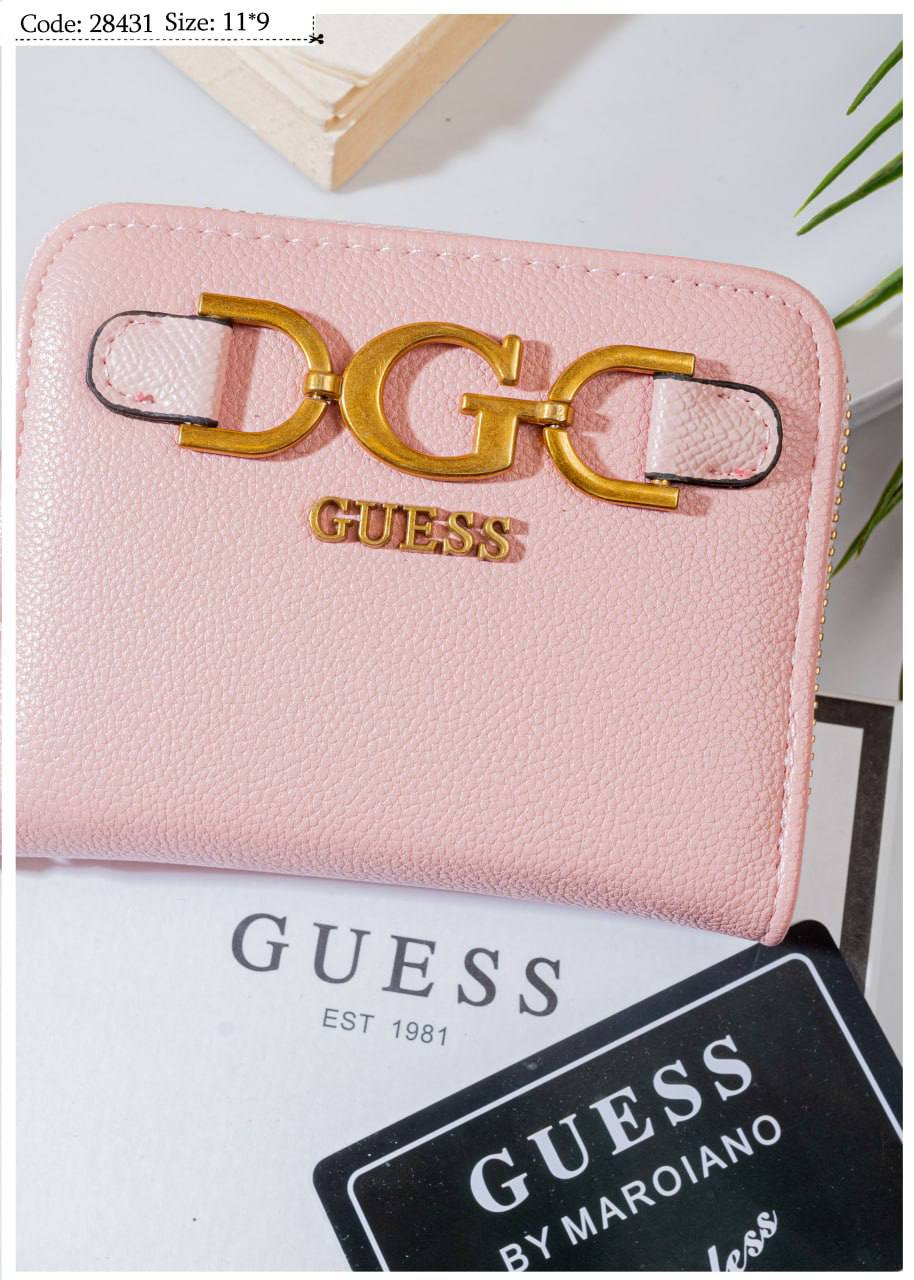 لإطلالة عصرية تخطف الأنظار، نقدم لك هذه المحفظة الصغيرة المربعة المستوردة بتصميم منسوب لعلامة GUESS. المحفظة تحمل رمز المنتج 28431 ومقاسها المدمج 11*9 سم يجعلها رفيقك المثالي في أي حقيبة. تتميز بتفاصيل ذهبية جريئة تمنحها طابعاً فاخراً ومميزاً.