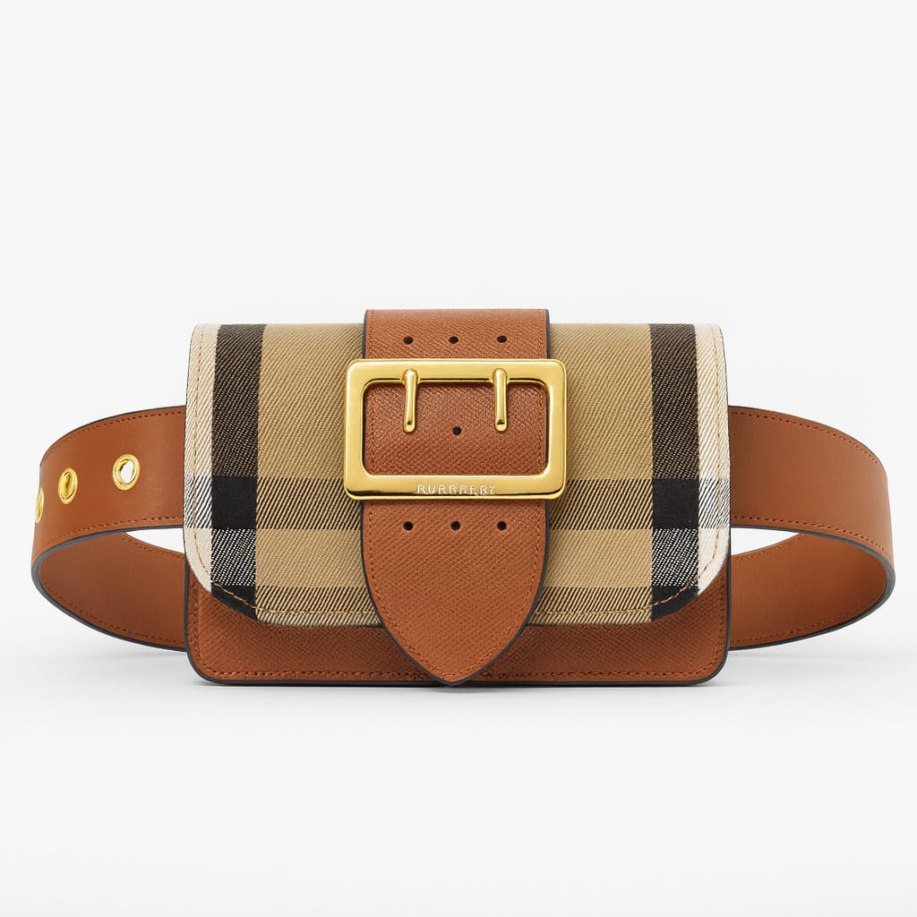 Burberry Checkمصنوعة من قماش الكانفاس المطبوع بنقشة الشهيرة، مع لمسات جلدية طبيعية بألوان أنيقة (أسود / بني).