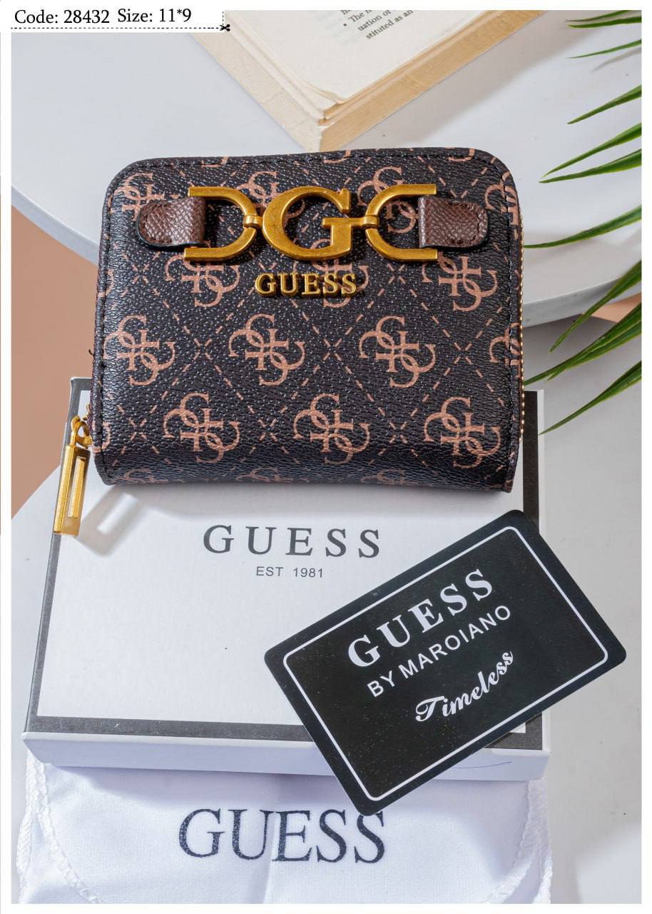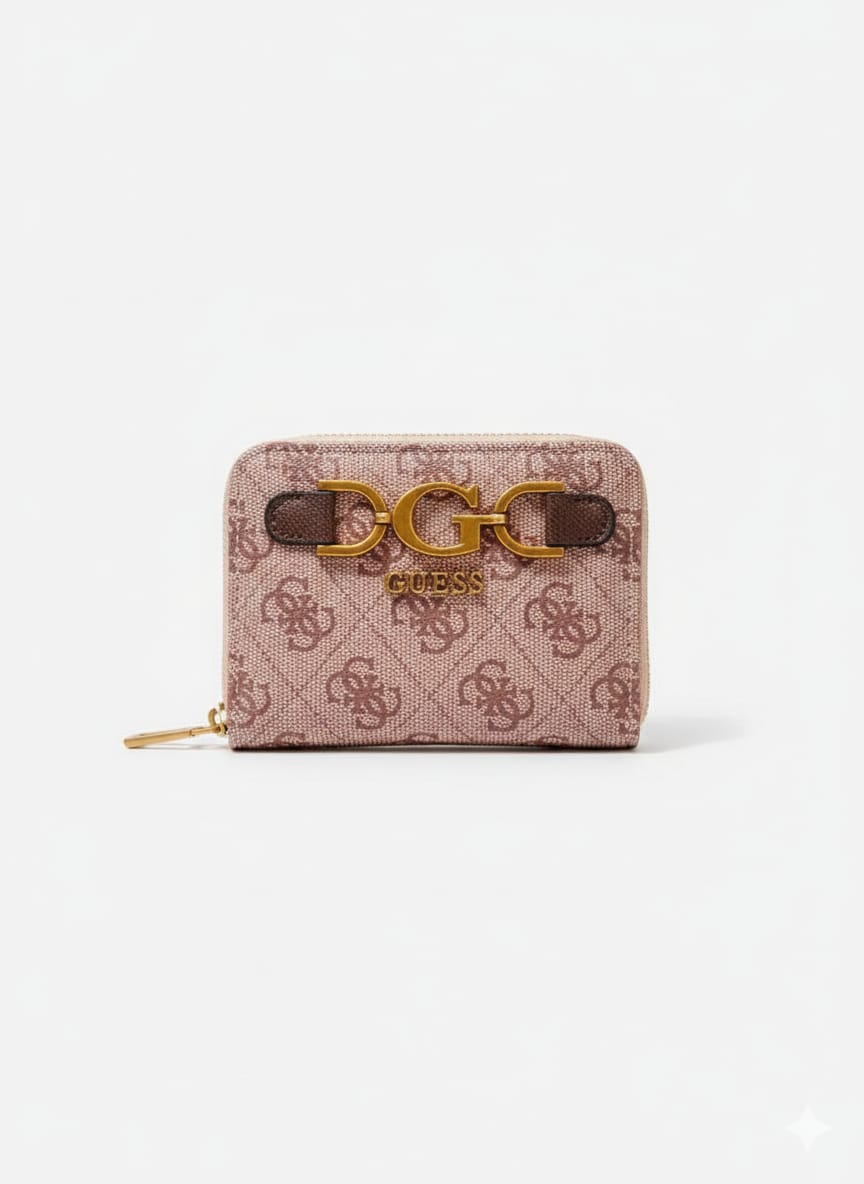 This imported Guess wallet features a luxurious design with the brand’s iconic monogram pattern and a bold metallic front detail that adds a touch of elegance and sophistication. The large decorative metal buckle on the front gives the wallet a unique and stylish character, making it a standout accessory for any occasion. Available in beautiful colors such as rose, navy, brown, and light pink, this model suits all tastes.