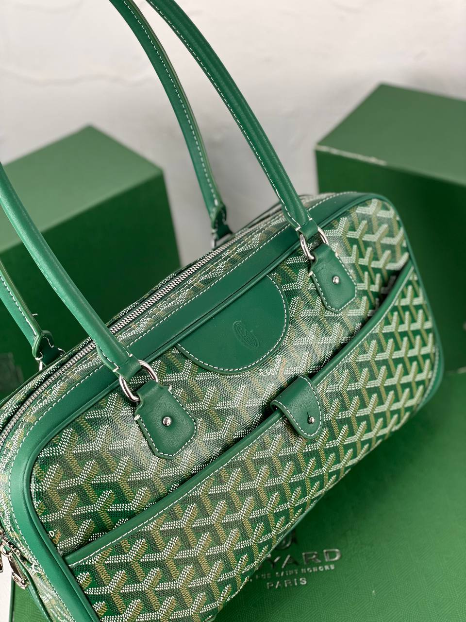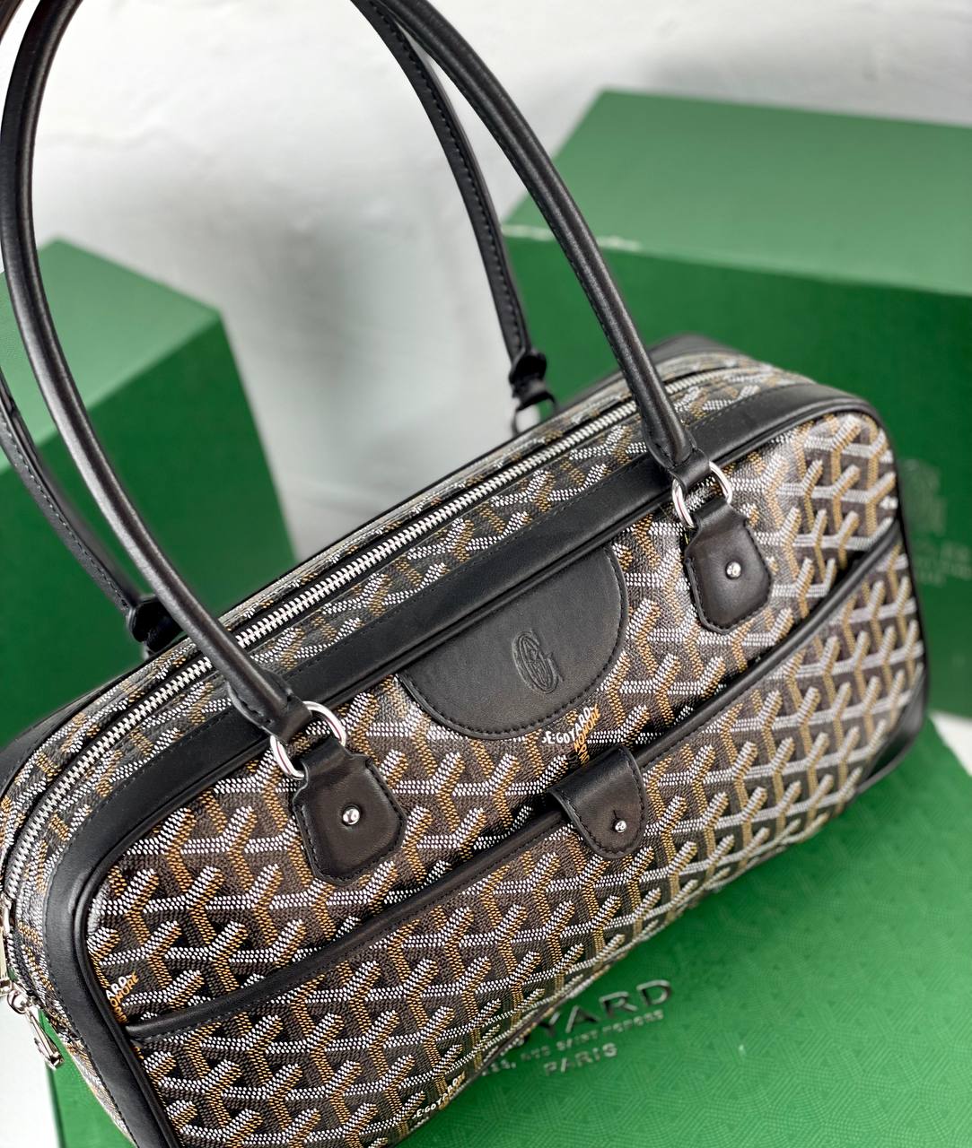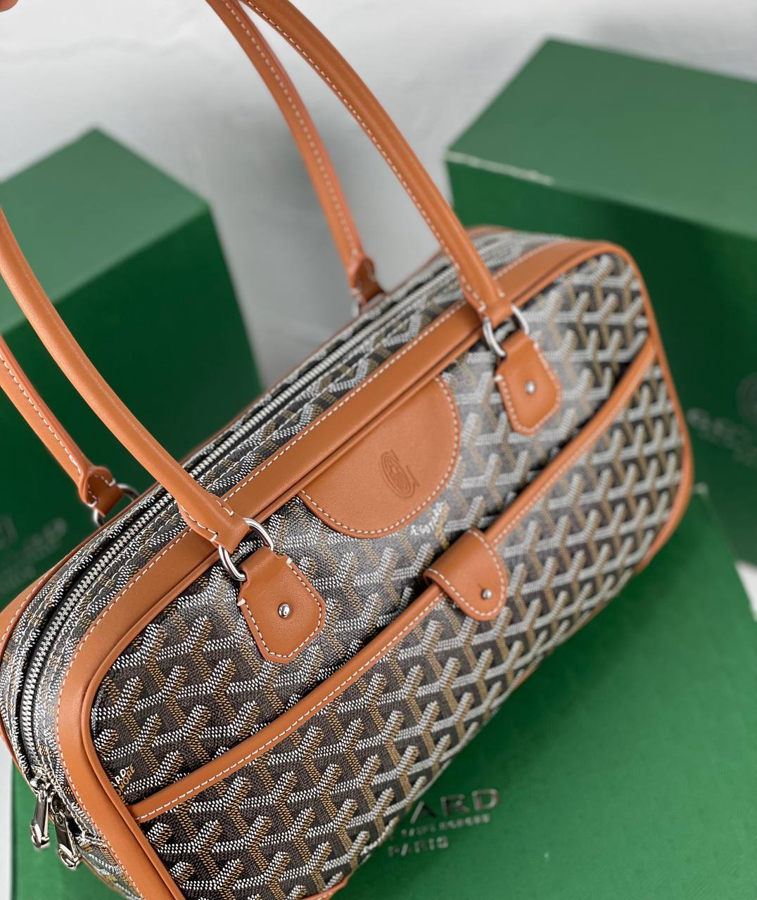 Goyard مصنوعة من خامات فاخرة تجمع بين المتانة والأناقة، مع تصميمالمونوغرام المميز والجلد الطبيعي على الحواف والمقابض.