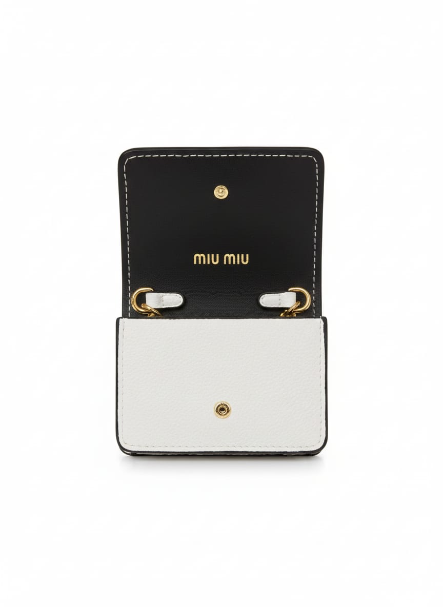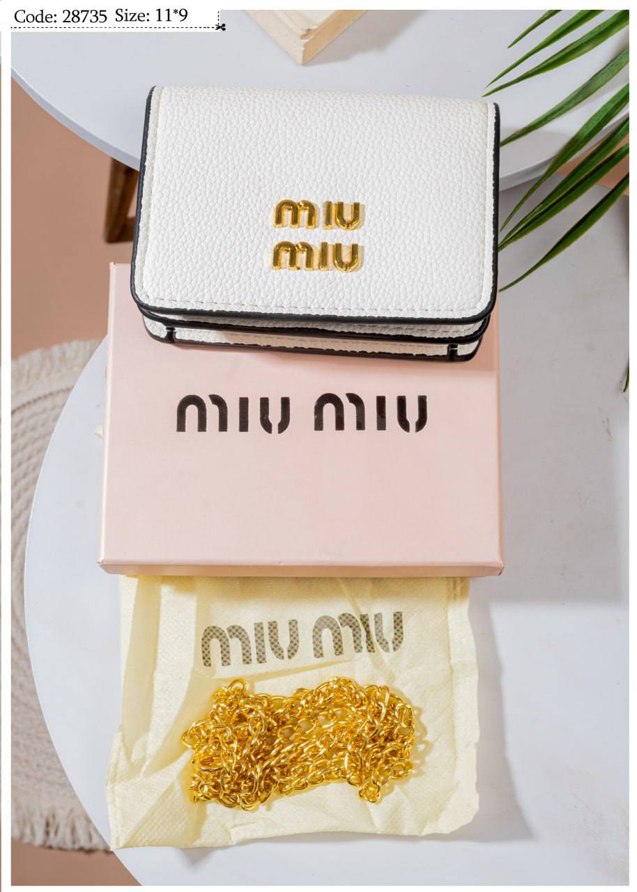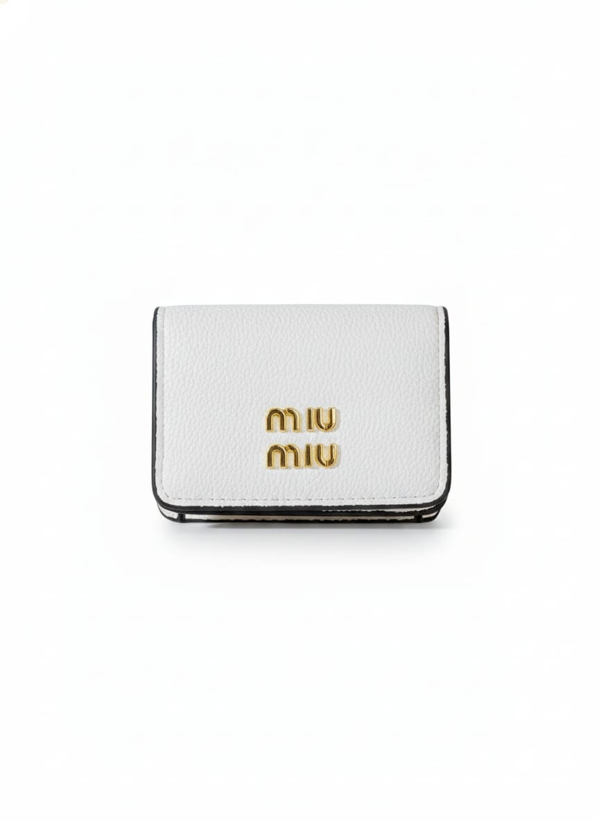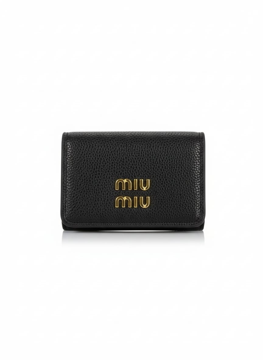 A premium imported Miu Miu wallet, crafted with luxurious textured leather and beautifully accented with the iconic gold Miu Miu logo on the front.