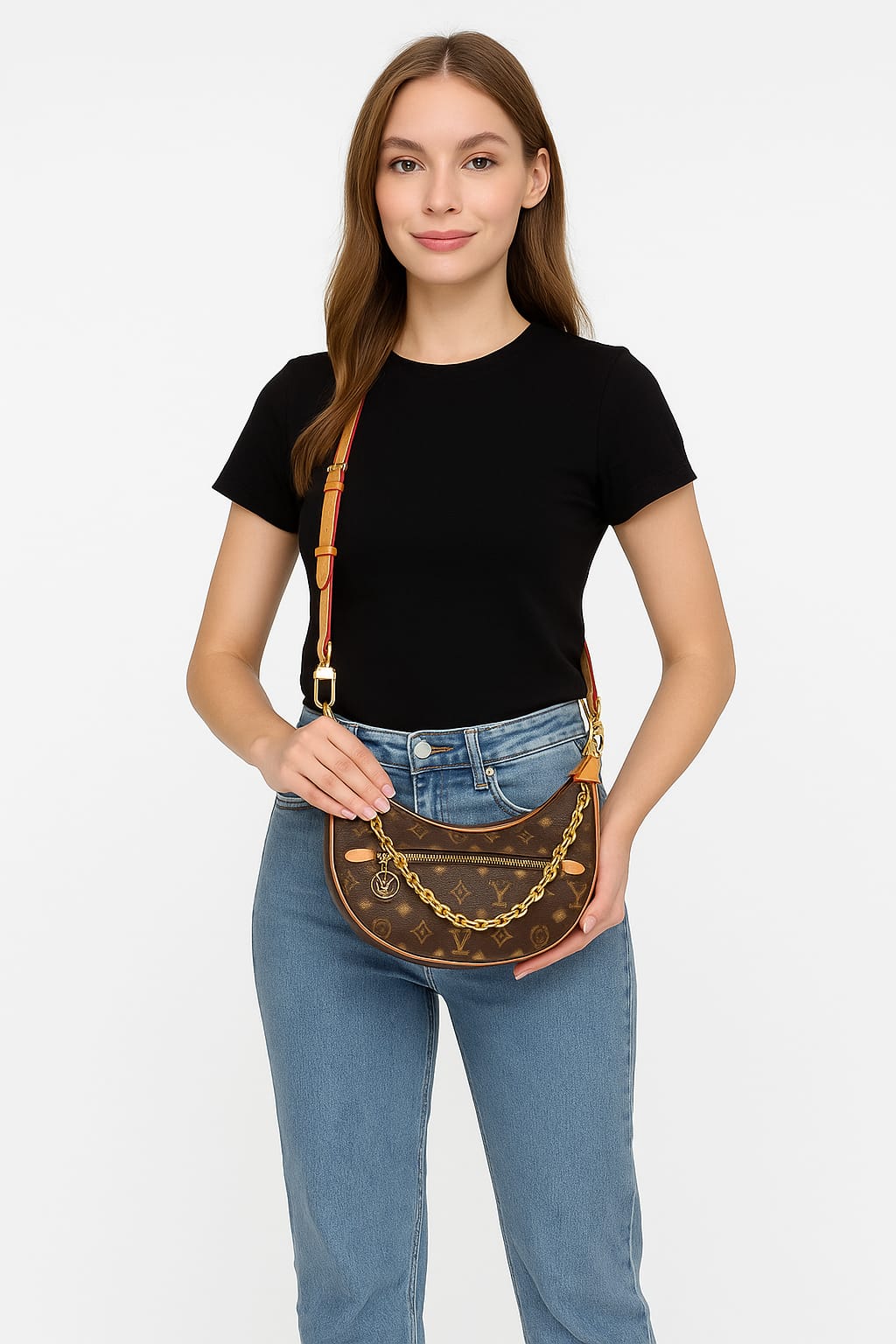 With its unique crescent-shaped silhouette and the iconic Louis Vuitton monogram canvas, it embodies both elegance and trendiness.