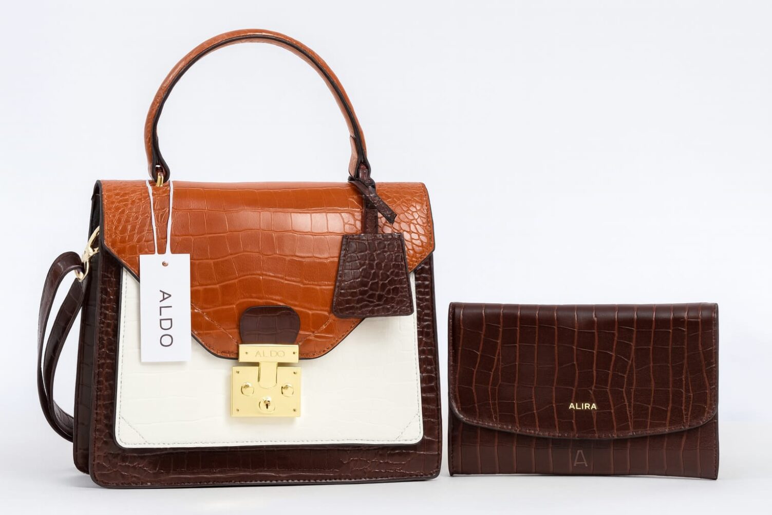 The Croc Elegance handbag is a statement piece that blends timeless sophistication with a modern edge. Designed for the woman who seeks to stand out, it features a bold geometric silhouette crafted in a tricolor palette of deep brown, creamy white, and warm orange, creating a refined and eye-catching look.