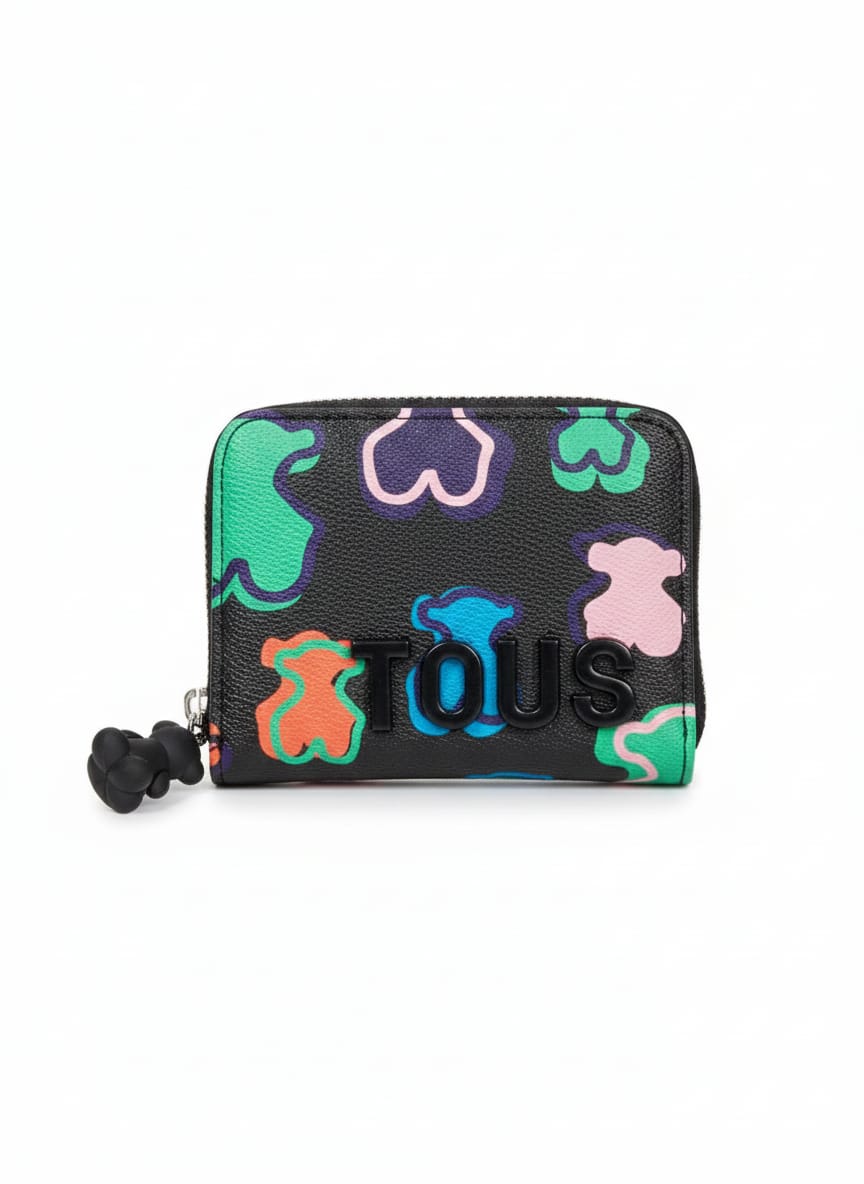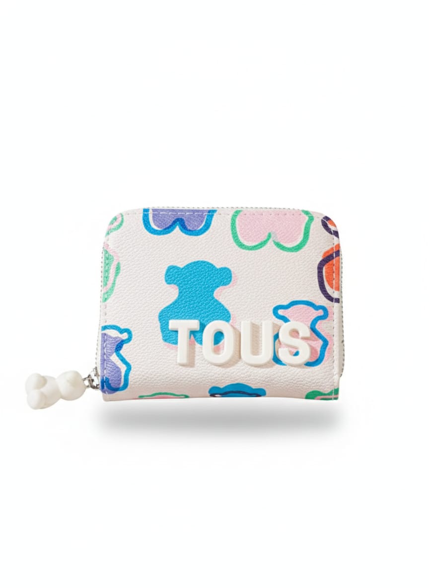 The exterior showcases TOUS’s iconic multicolor bear pattern, adding a youthful and eye-catching touch to the design. The front features a raised TOUS logo crafted with premium material, enhancing the wallet’s luxurious look while celebrating the brand’s distinctive identity.